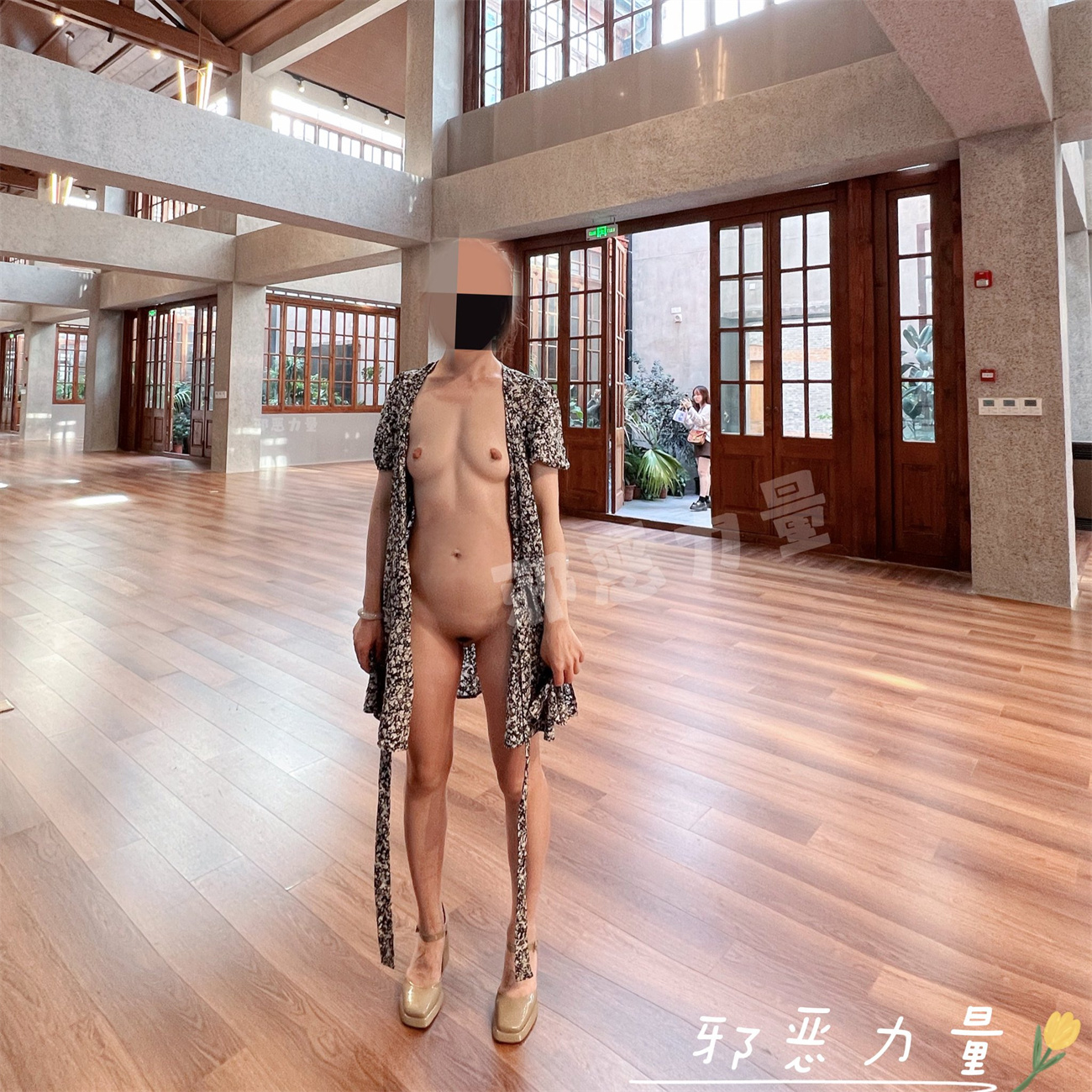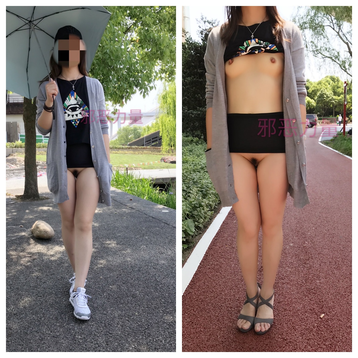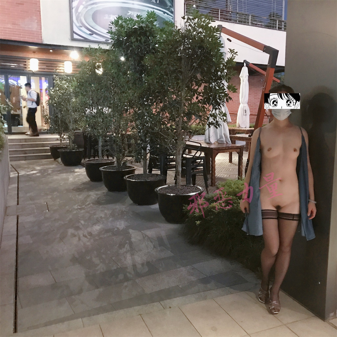推特上的牛逼露出女神【邪恶力量】网吧人群中的座位、游戏厅中真空短裙跳舞露B、户外全裸散步