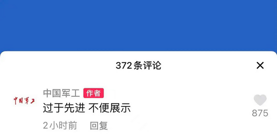“中国军工”在这条视频下称,“过于先进,不便展示”